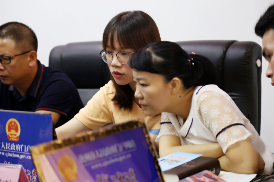 市卫生健康委副主任、党组成员劳春红、办公室、人事科、规划发展与信息化科、财务科、法规监督科、体制改革科、疾病防控科、医政医管科、基层卫生健康科、卫生应急办公室、人口监测与家庭发展科、妇幼健康科、中医药管理科、机关党委负责同志,钦南区、钦北区相关科室人员。